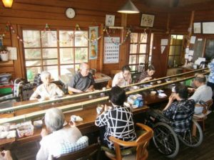 日中を通して機能訓練や御鉾ヶ浦の自然環境を活かしたレクレーション・趣味活動等、職員や他の利用者の方との交流を通して心身健康維持・向上を目的とした介護を行ってます